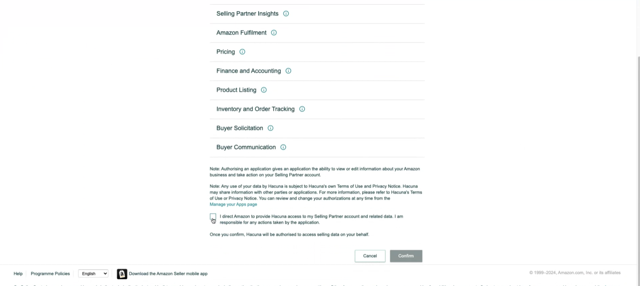 Then click Select and it will redirect you to Amazon to authorise Hacuna.