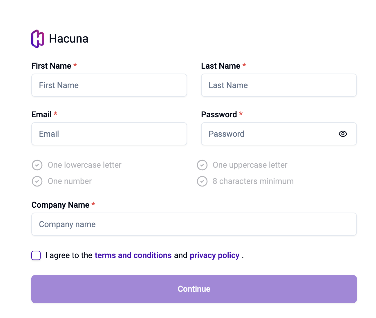 Please register your account at https://app.hacuna.io/register